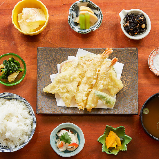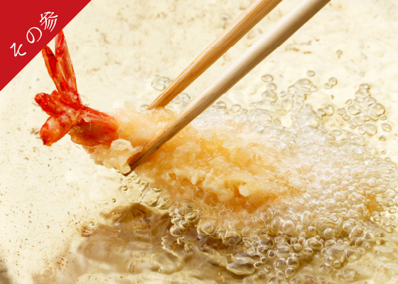 揚げたてサクサクの天ぷら定食や丼の天ぷらは、オーダーを受けてから揚げるので、熱々サクサクを楽しんでいただけます。作り置きは一切していません。